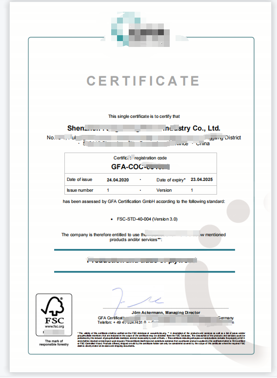 深圳市XX木业有限公司FSC证书