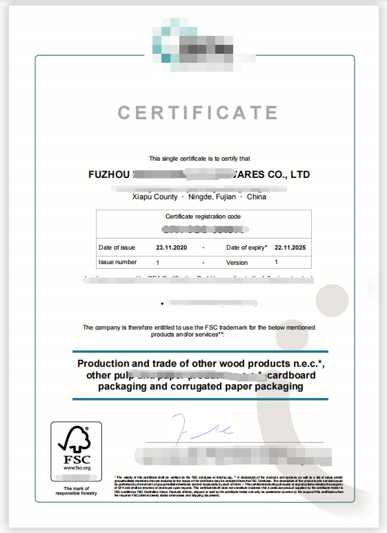 霞浦县XX商贸有限公司FSC证书