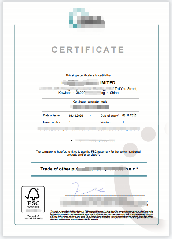 霞浦县XX商贸有限公司FSC证书