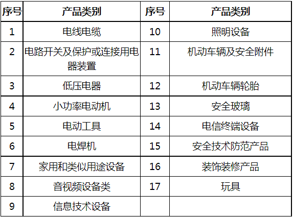 列入《实施强制性产品认证的产品目录》中的产品包括家用电器、汽车、安全玻璃、医疗器械、电线电缆、玩具等22大类186种产品。